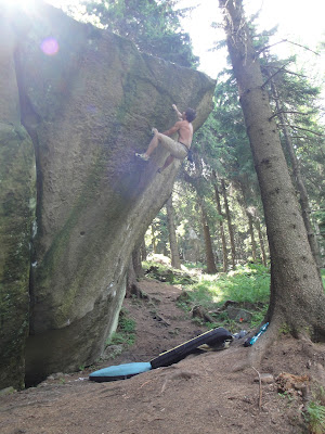 After the unsuccessful attempt to do some filming at Bor in winter, we went there again last weekend. The weather was perfect. I climbed Zlatý Drak (8A+) for the shooting. I could not do crux move on Saturday but I got used to it the next day so in the end, I did it. On Saturday evening, I also added Šváchič's new thing -- Mozartovy koule 7C.